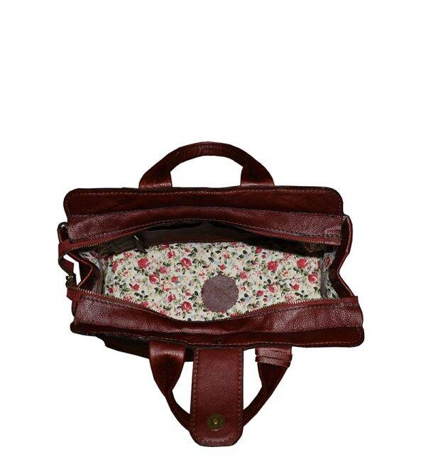 בחזית – בחלקו העליון של התיק, דוגמת רוכסן הנפתחת לשני הצדדים ומתחתה דוגמת חצי עיגול נפחי מחוייט